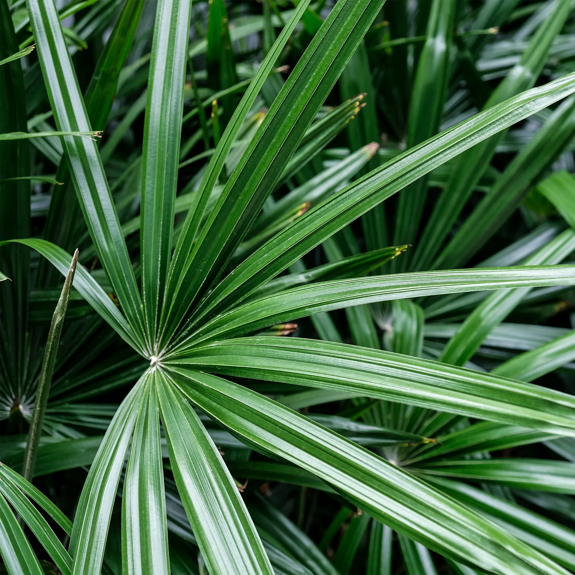 Le Rhapis excelsa, communément appelé palmier bambou ou Lady Palm, est un grand classique des plantes d’intérieur, apprécié pour sa croissance dressée et ses frondes élégantes en éventail. Avec ses touffes de cannes fines surmontées d’un feuillage vert luxuriant, il crée un écran naturel ou un accent décoratif dans les salons, bureaux et vérandas. Contrairement à certains palmiers tropicaux, il est très adaptable et tolère la faible luminosité ainsi qu’un air plus sec, ce qui en fait l’un des palmiers les plus faciles à cultiver en intérieur. À croissance lente et longue durée de vie, le palmier bambou apporte une touche de sophistication intemporelle tout en ne demandant qu’un arrosage modéré et un entretien occasionnel.
